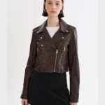 BlazeCrest Cropped Moto Leather Jacket – Women’s Slim Fit