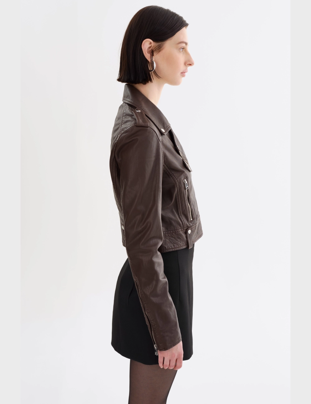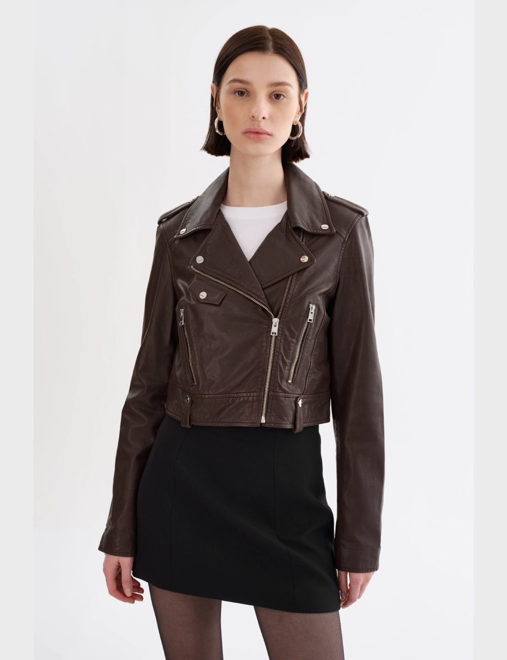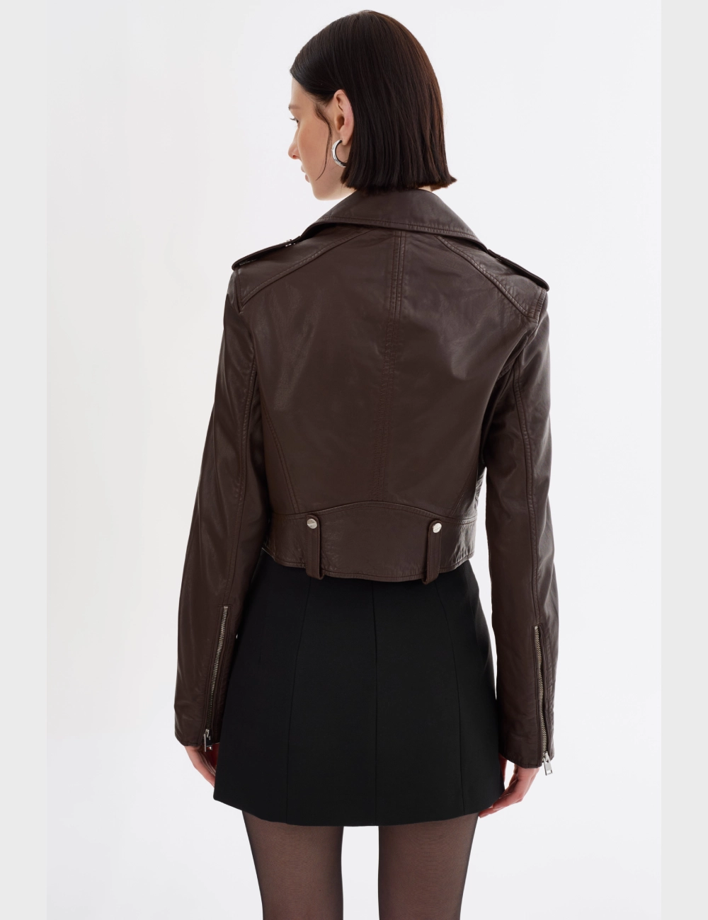 - Edgy cropped biker jacket designed for modern street style and confident looks