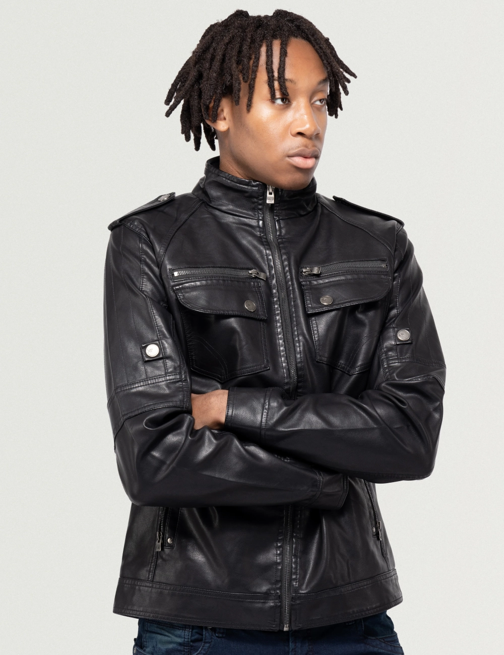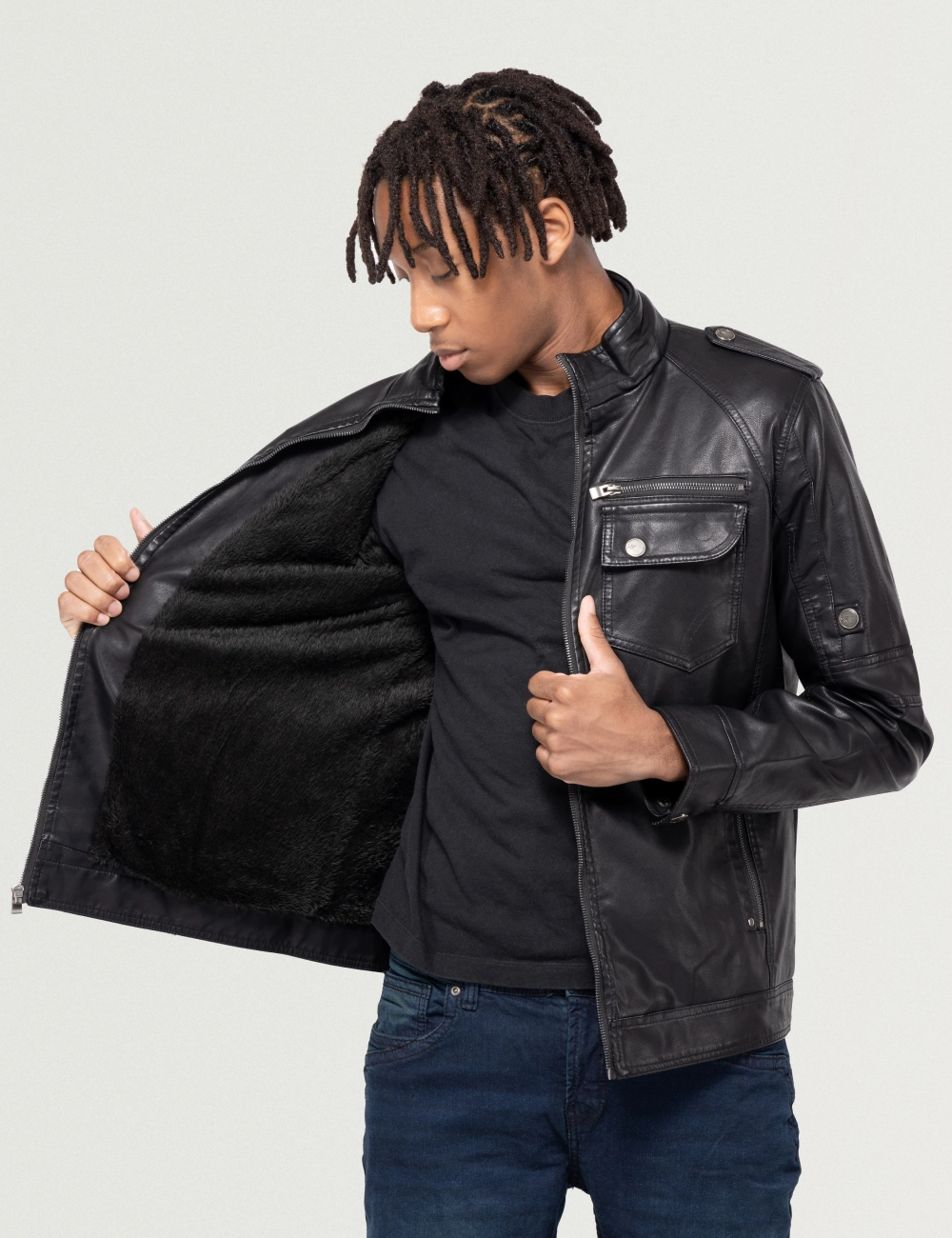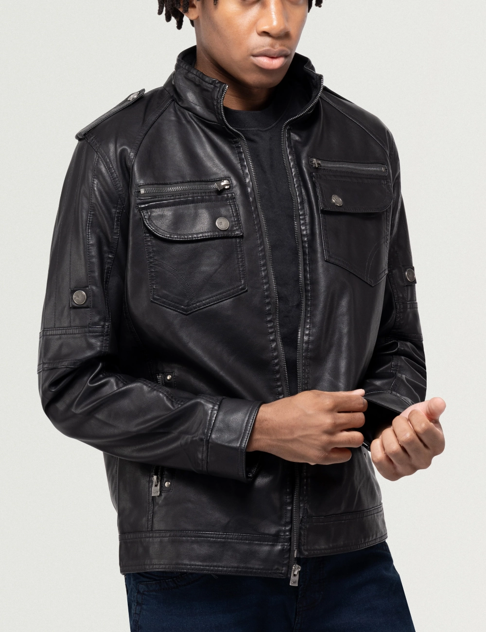 Gravemount Black Hooded Biker Jacket – PU Leather Moto Fit