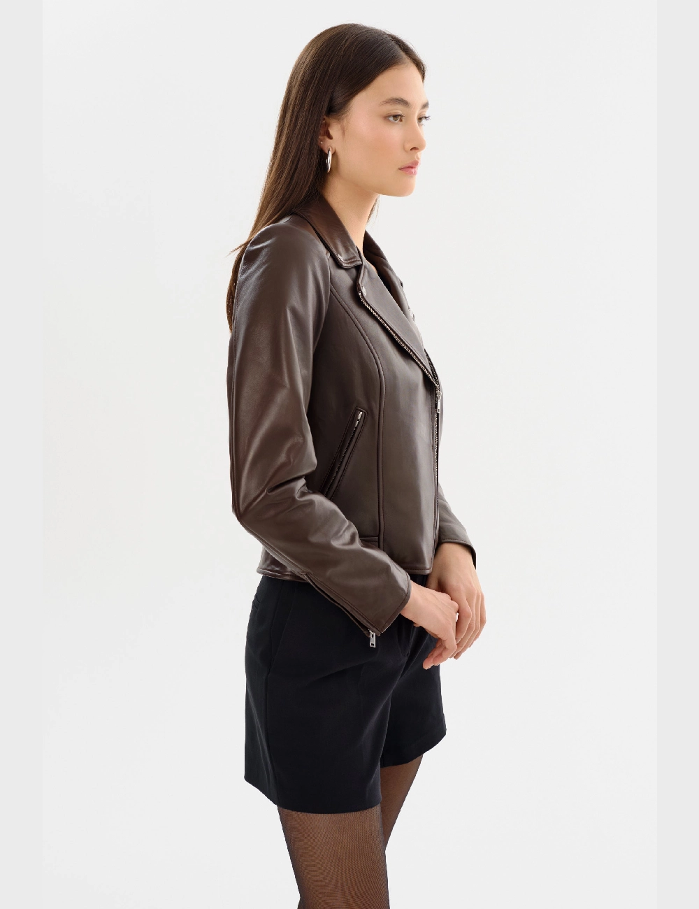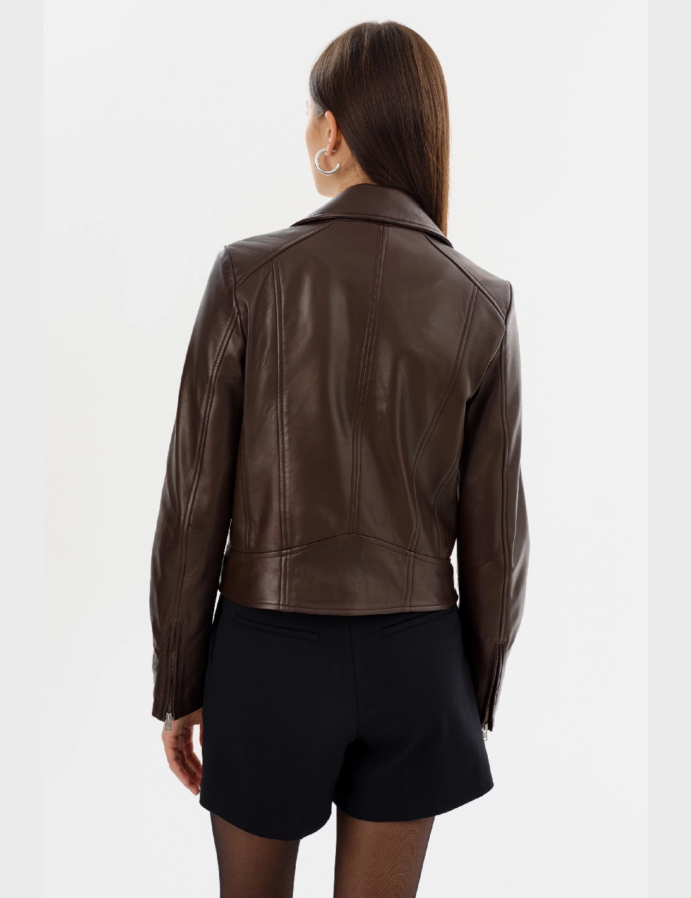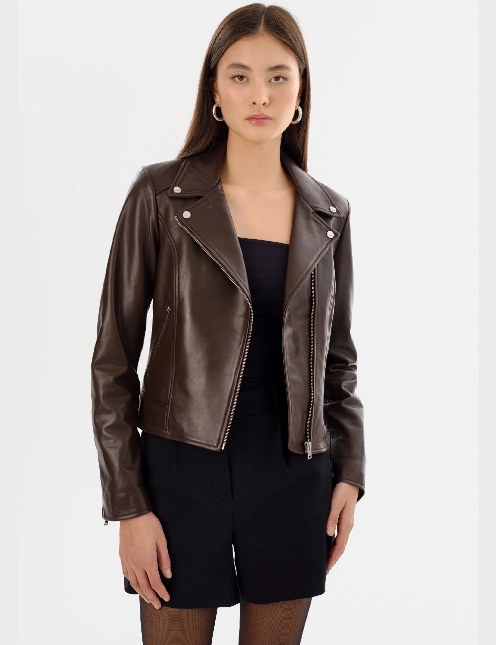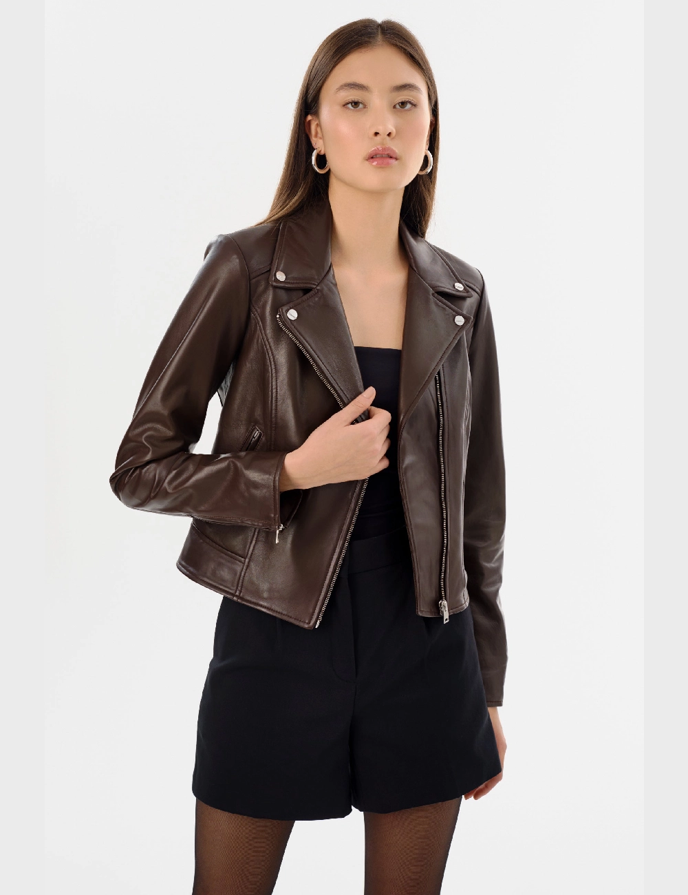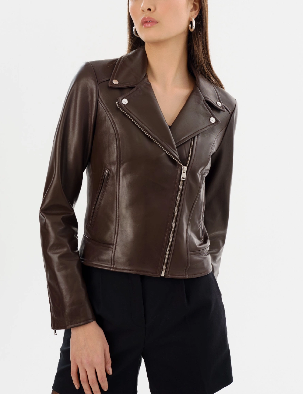 - Luxury women’s biker jacket crafted from premium 100% lamb leather