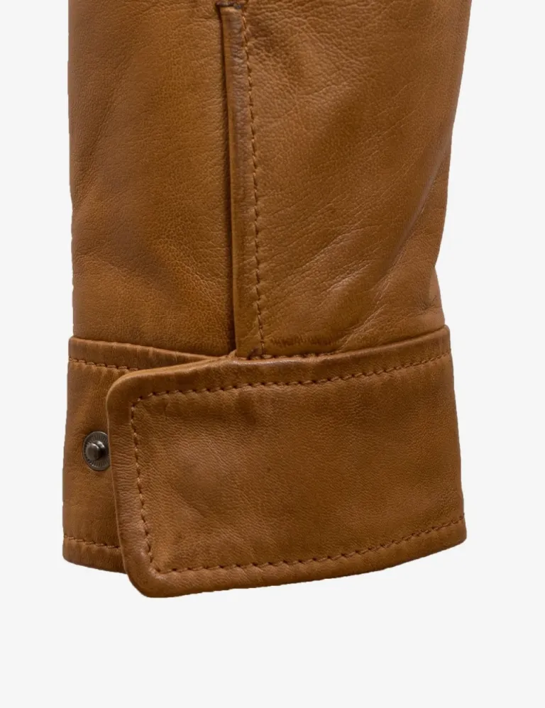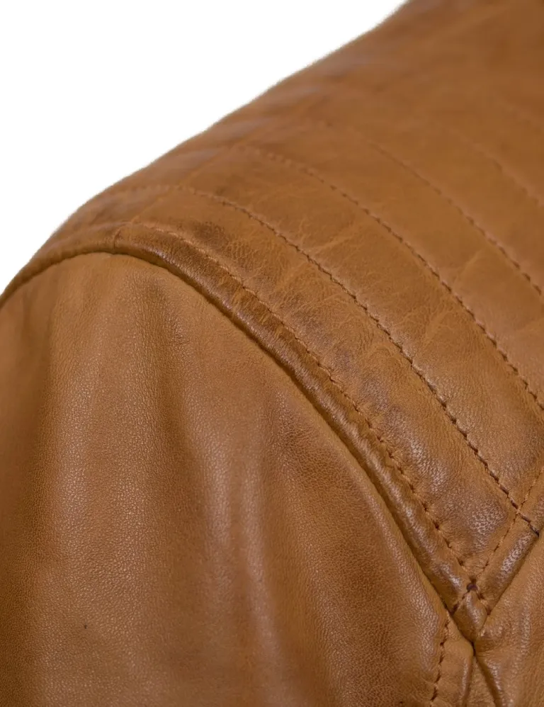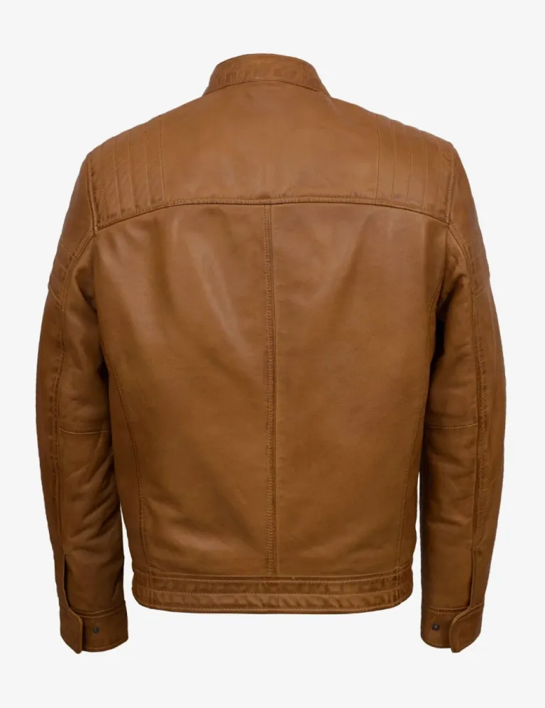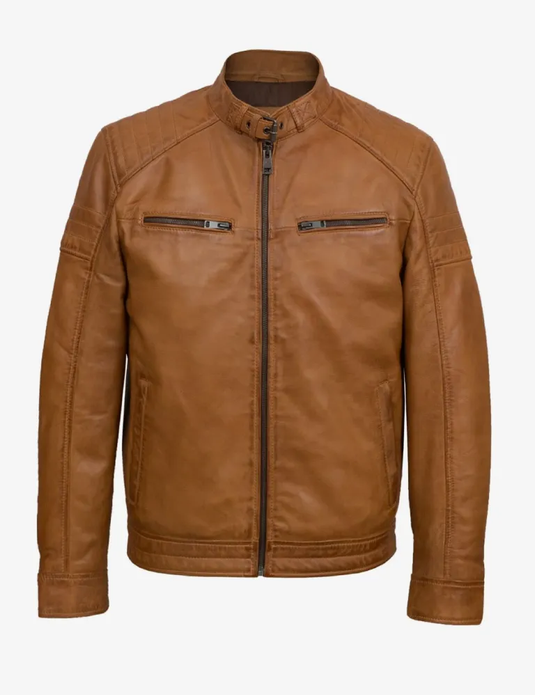Men’s Distressed Tan Leather Biker Jacket – Classic Moto Style with Vintage Finish