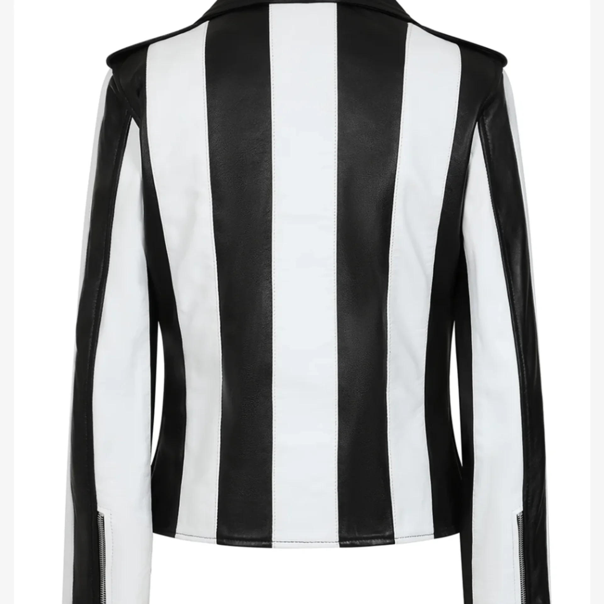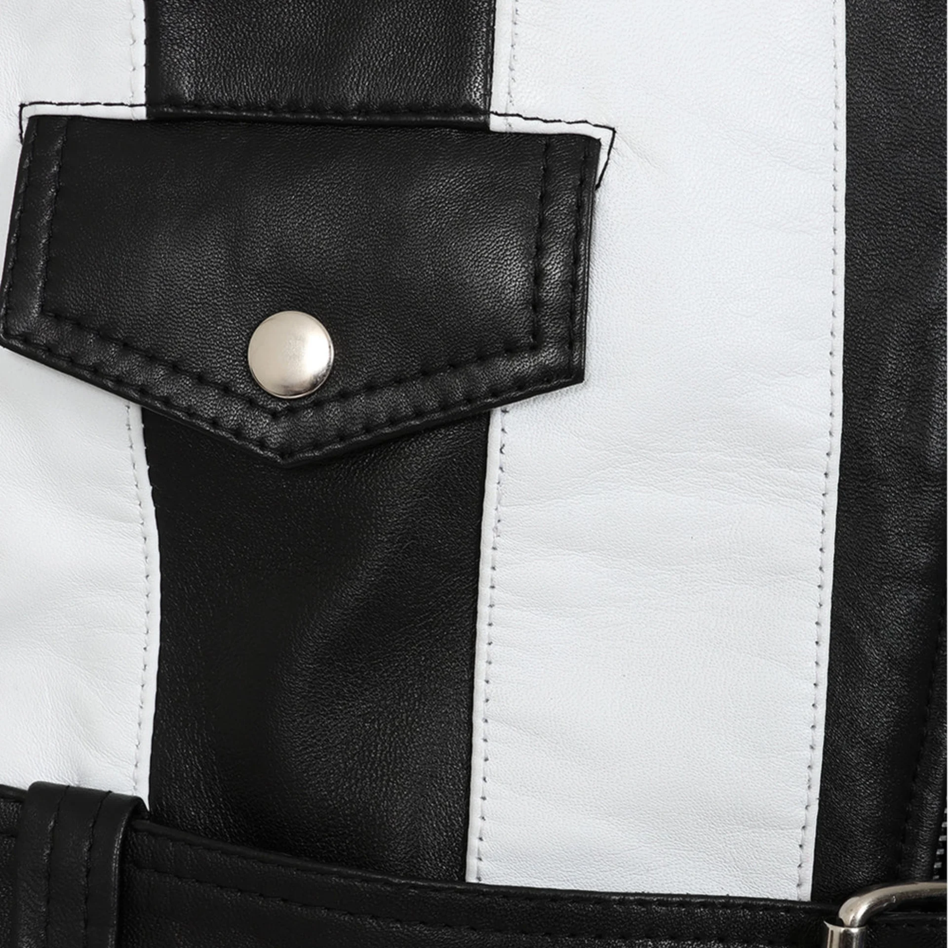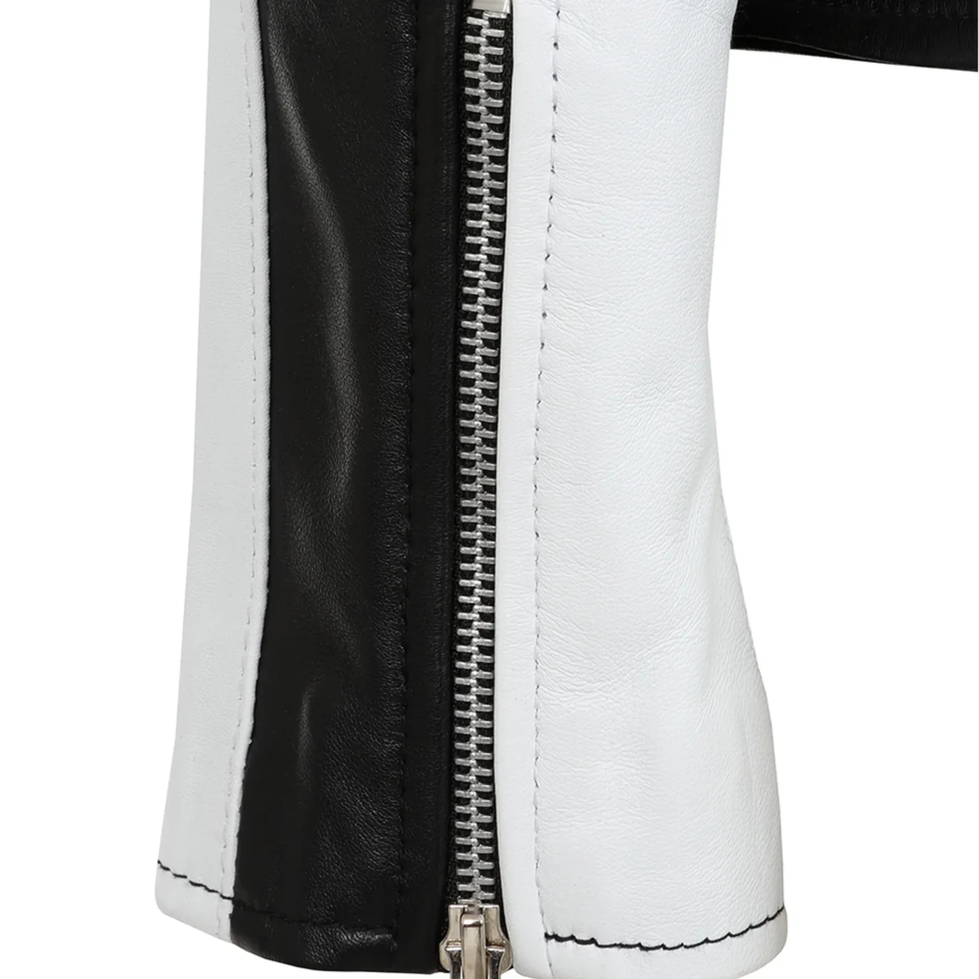 Women’s Mono Strike Black & White Leather Biker Jacket